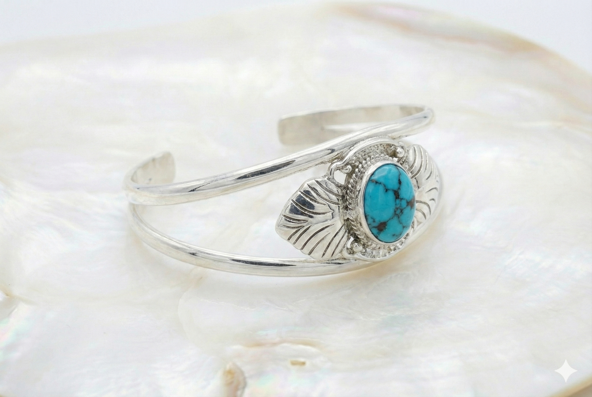 Silver-toned alloy with fine silver plating and turquoise stone — handcrafted with attention to detail and a luxurious feel.